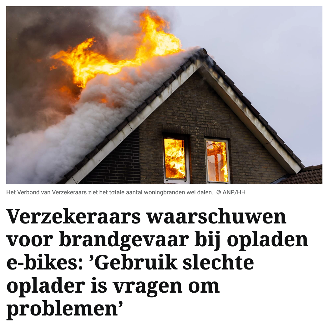 据telegraaf.nl报道,电动自行车在荷兰越来越受欢迎,但与之相伴的,是逐渐攀升的安全隐患。来自阿珀尔多伦的Wierindre Debipersad(41岁),在10月初就遭遇了一次“电池爆炸”