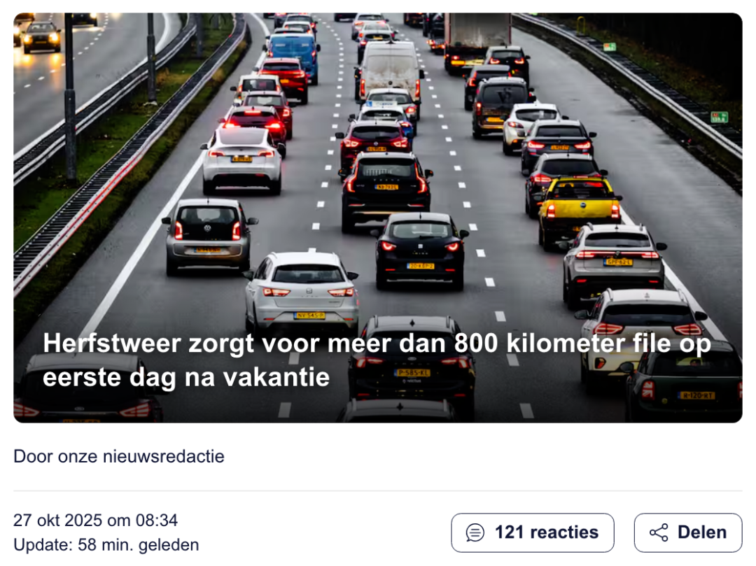 随着秋假结束、冬令时切换、天气多变,荷兰的通勤早高峰几乎成了“年度体力战”。