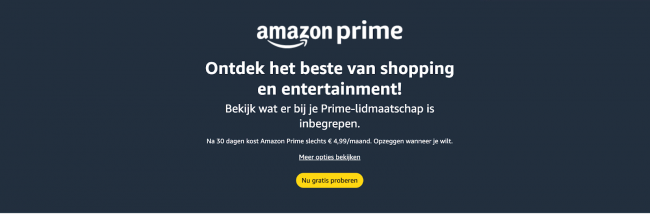 进入Prime会员页面:点击点击“Nu gratis proberen”,即可免费试用30天。链接直达 >>